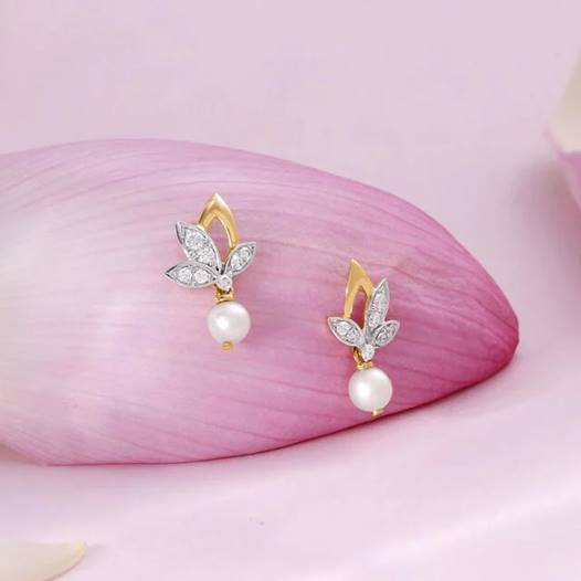Crafted in 14KT gold, these earrings are a dream. An asymmetric lotus design set with diamonds and a pearly drop of perfection, they are like poetry for her ears.